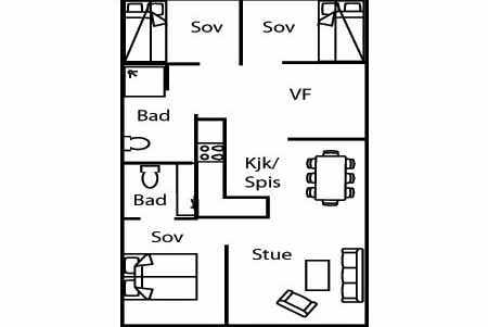 Slaapkamers:Slaapkamer 1= 1 tweepersoonsbed. Slaapkamer 2= 1 stapelbed met 150 cm breed onderbed. Slaapkamer 3= 1 stapelbed met 150 cm breed onderbed.