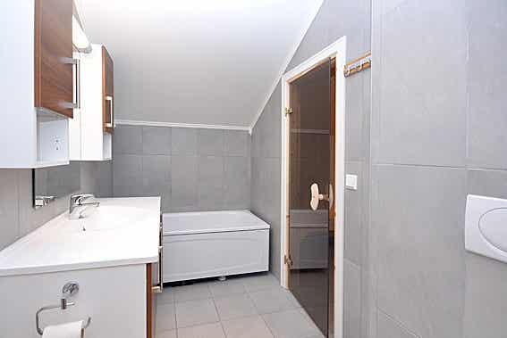 Appartement op de derde verdieping, 10 bedden, 145 m², woonkamer met gecombineerde keuken, 4 slaapkamers, 2 douches, 2 toiletten, 1 sauna, badkuip.