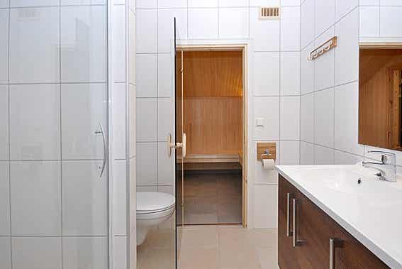 Badkamers:Badkamer 1: met douche en toilet. Badkamer 2: met douche, toilet, sauna en ligbad.