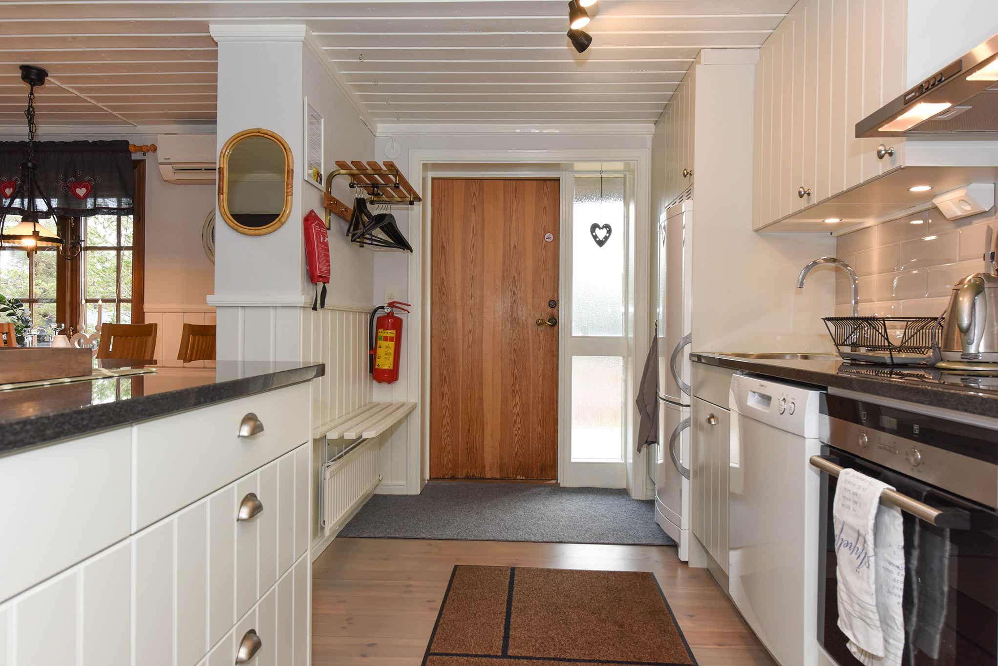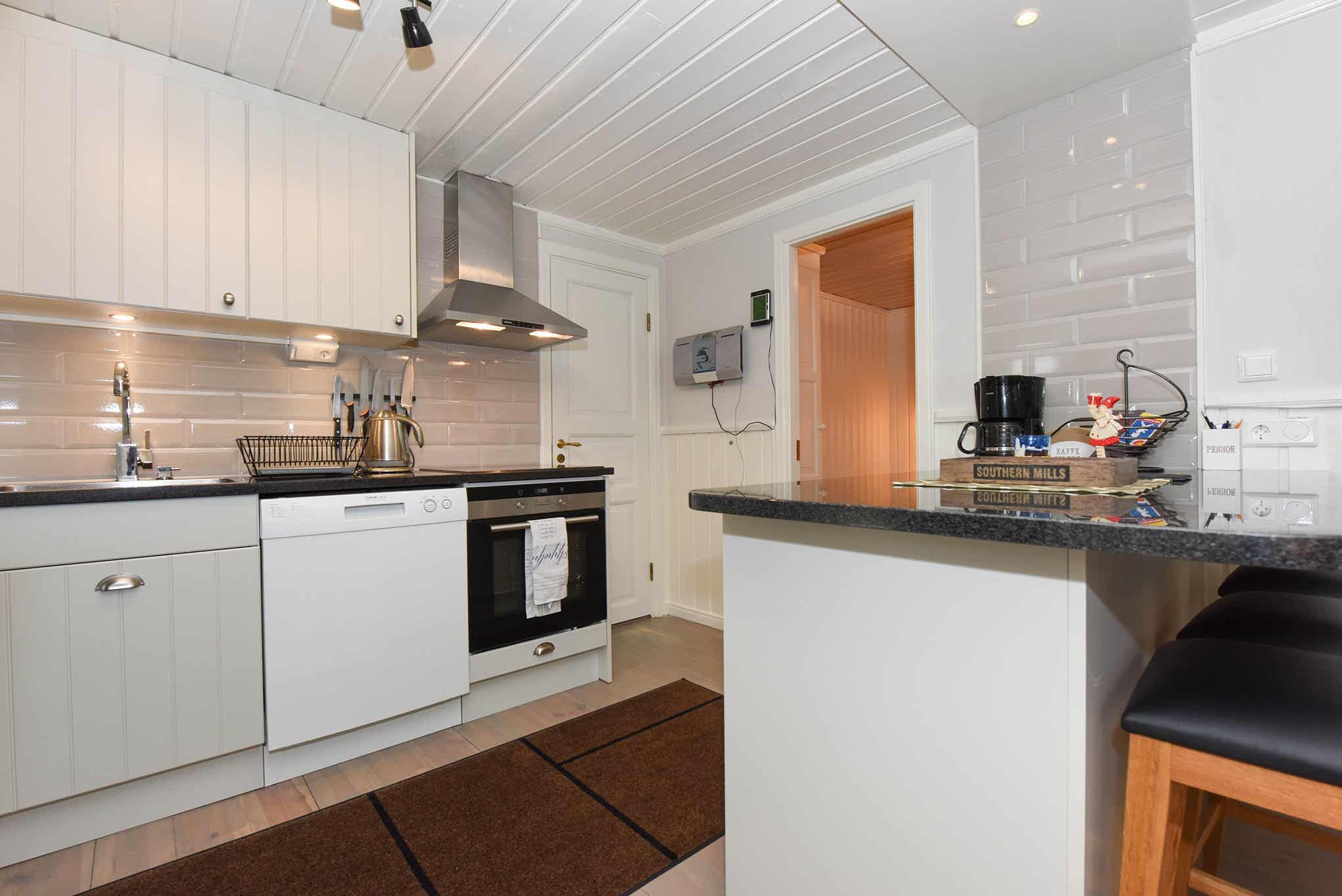De keuken is voorzien van fornuis met oven, koelkast, vriezer, vaatwasser, magnetron.