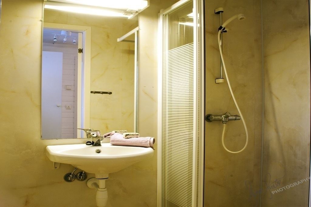 Badkamer 1: Douche, wastafel, toilet en sauna
