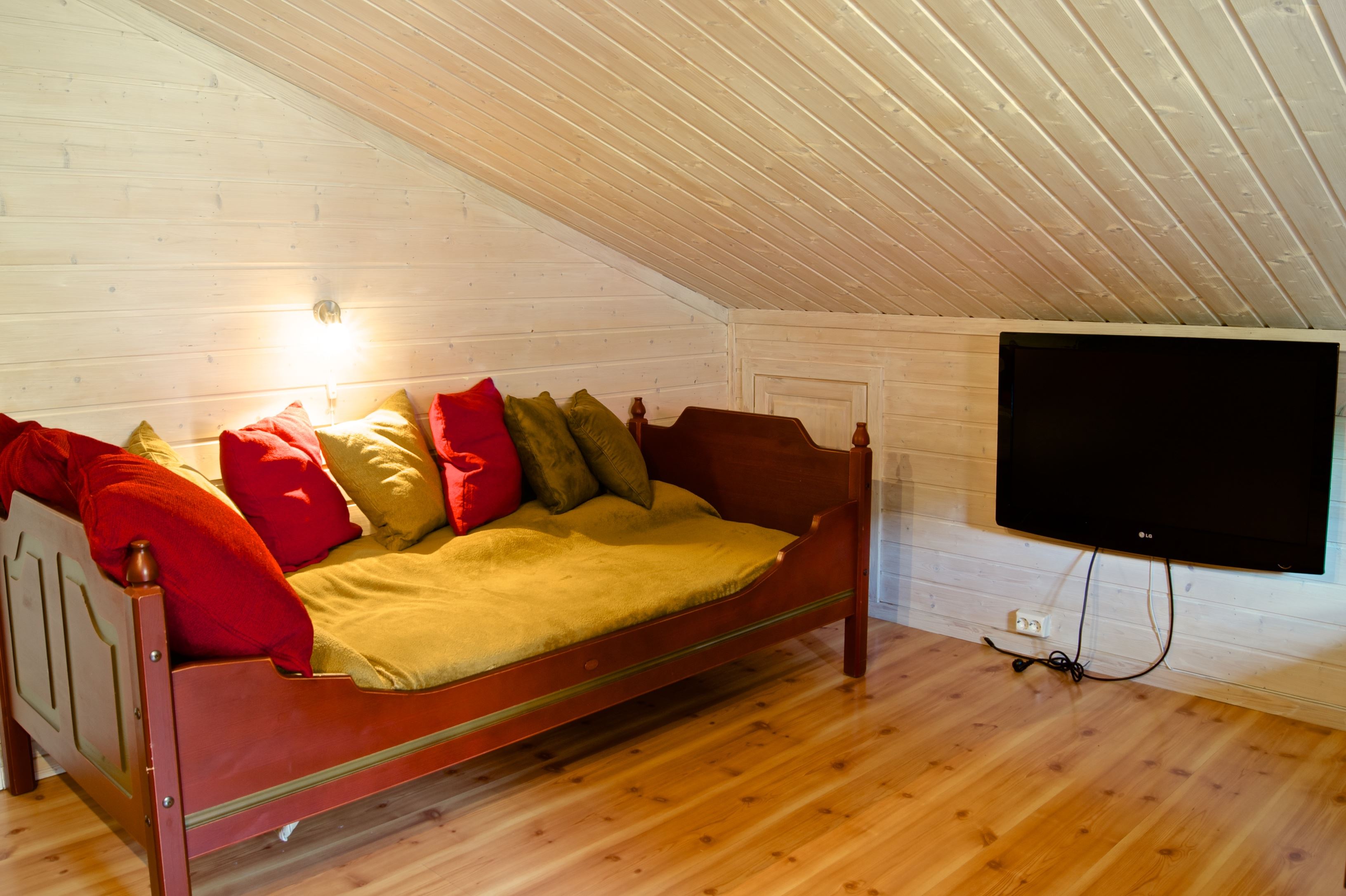 Loft: tweepersoonsbed (180 cm x 200 cm) + eenpersoonsbed (90 cm x 200 cm)