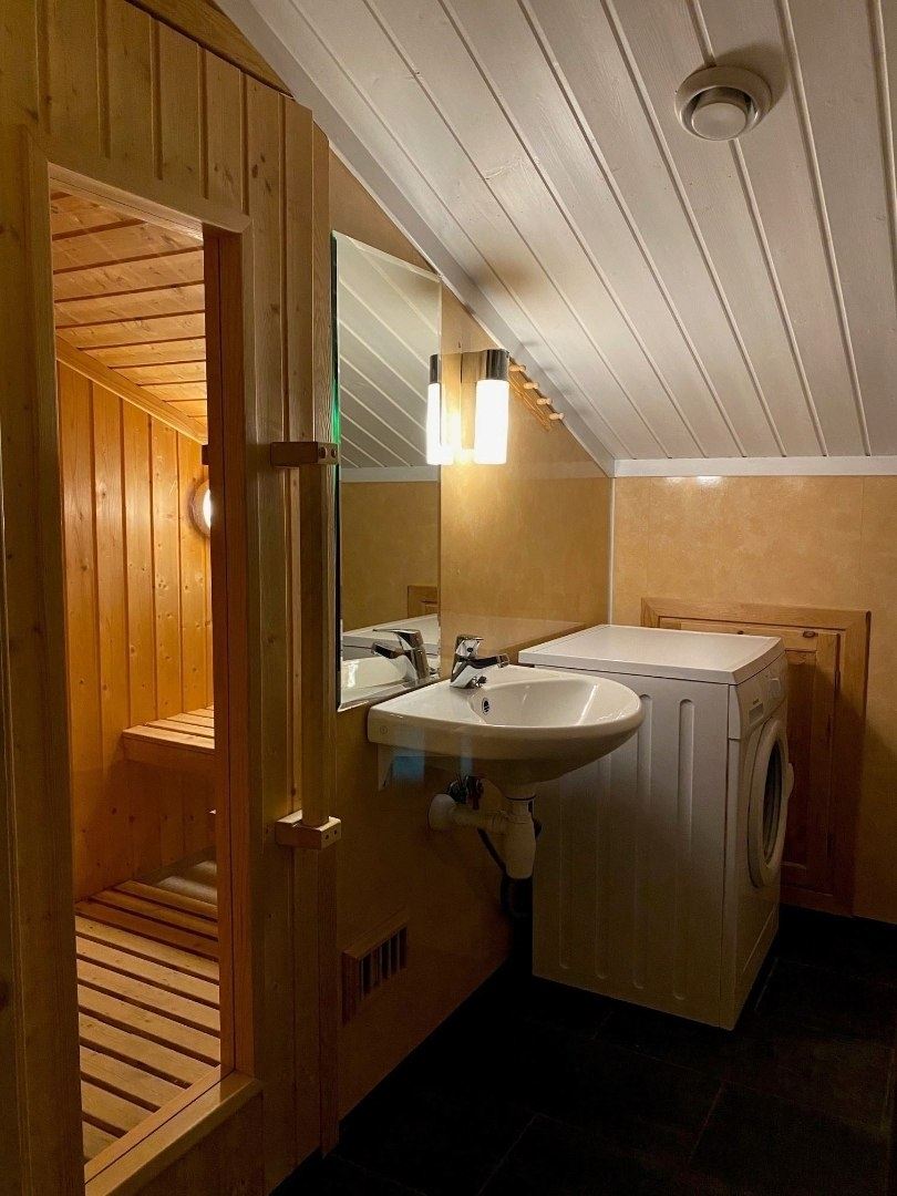Badkamer 1: Douche, wastafel, toilet en sauna