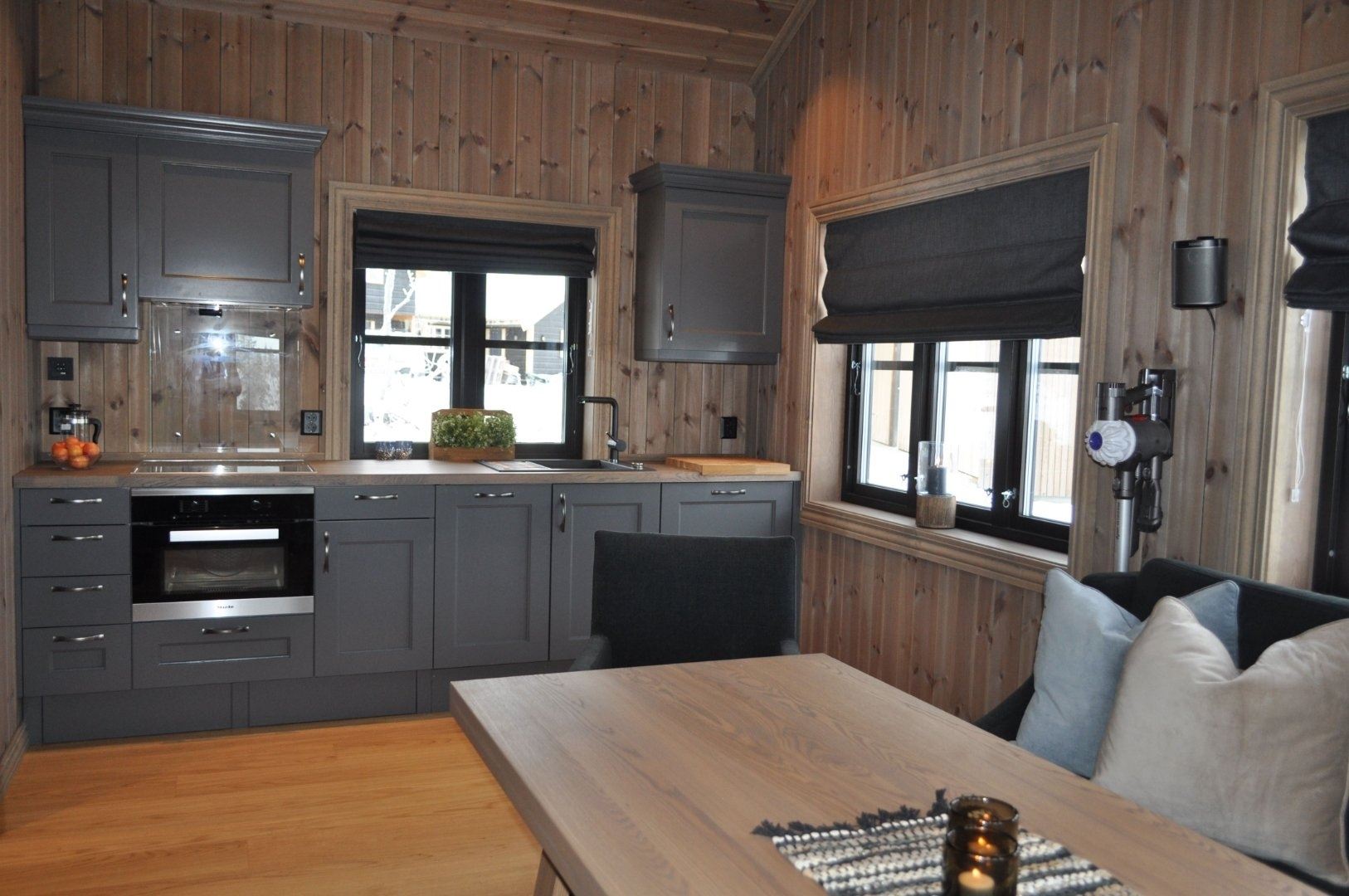 Annex Varden 290 biedt alles wat u nodig heeft voor een ontspannen verblijf. De keuken is voorzien van een kookplaat, koelkast, vriezer, magnetron, vaatwasser en koffiezetapparaat.