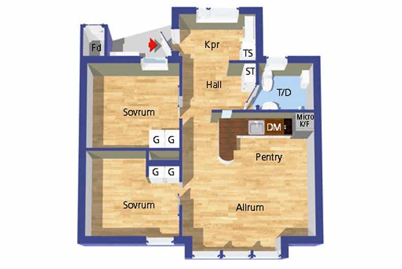 Åre Fjällby bevindt zich in Åre By. Appartement op de bovenverdieping, 5 bedden, 52 m², woonkamer met gecombineerde keuken, 2 slaapkamers, 1 douche, 1 toilet.