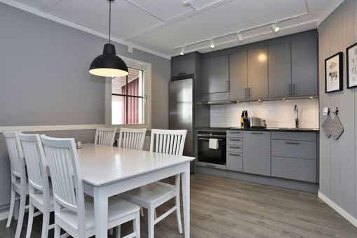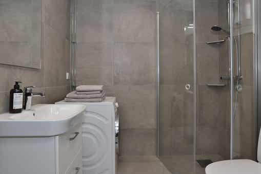 Keuken bevat kookplaat, oven, koelkast met vriesvak, vaatwasser, magnetron.