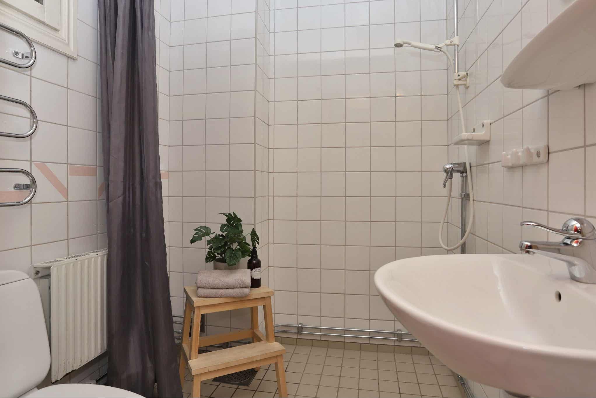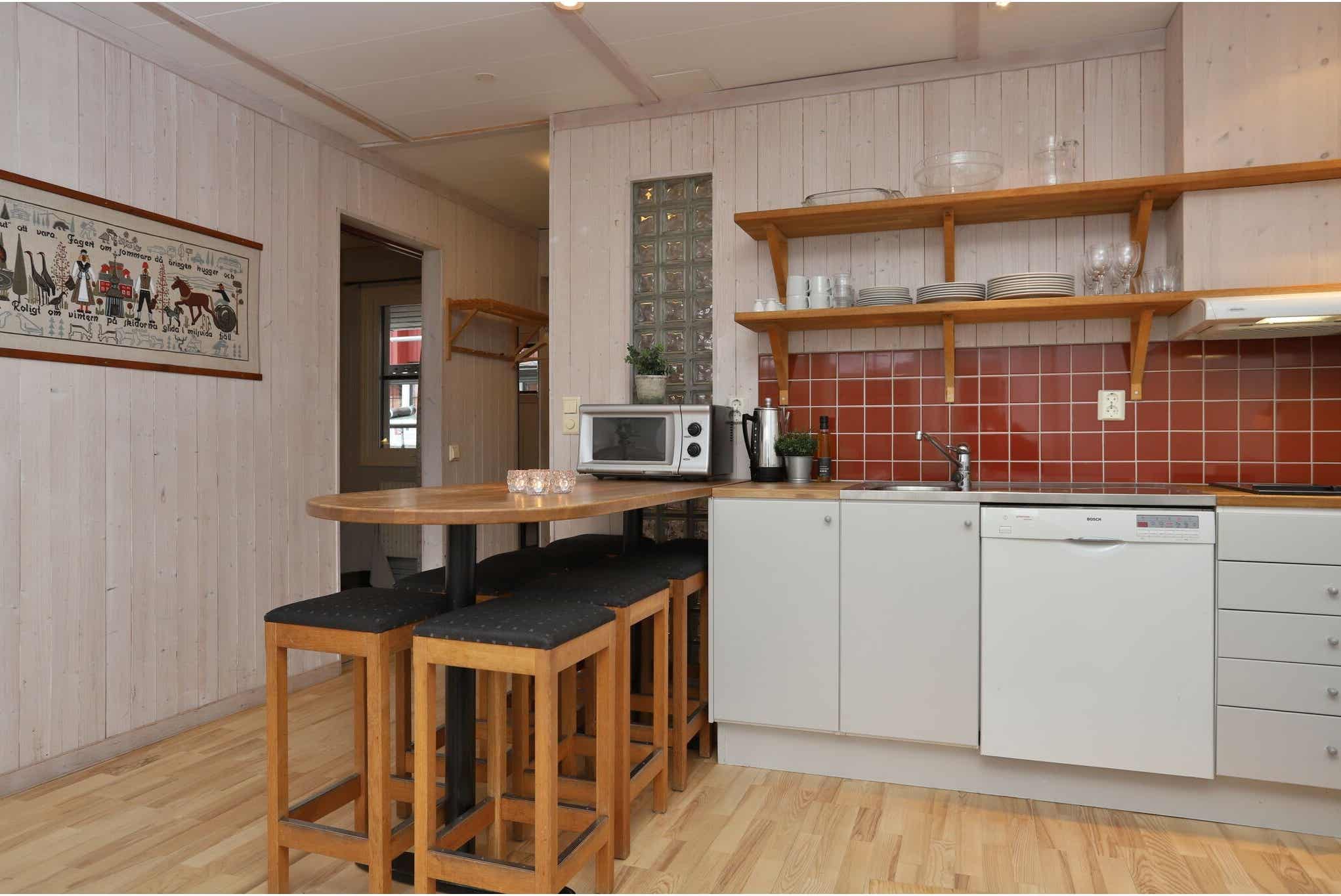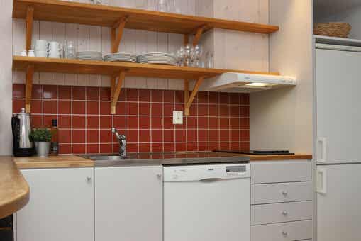 Keuken bevat kookplaat, magnetron (geen ander type oven), koelkast met vriesvak, vaatwasser.