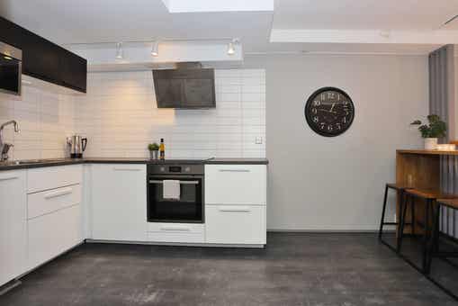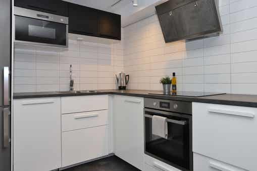 Keuken is voorzien van fornuis met oven, koelkast met vriesvak, vaatwasser, magnetron.