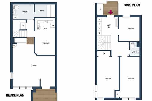Badkamers:Badkamer 1=douche, wc, sauna. Badkamer 2=wc.
