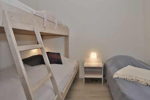 Slaapkamers:Slaapkamer 1 = 1 stapelbed met 120 cm breed onderbed. Slaapkamer 2 = 1 stapelbed met 120 cm breed onderbed. Slaapkamer 3 = 1 stapelbed met 120 cm breed onderbed, 1 eenpersoonsbed.