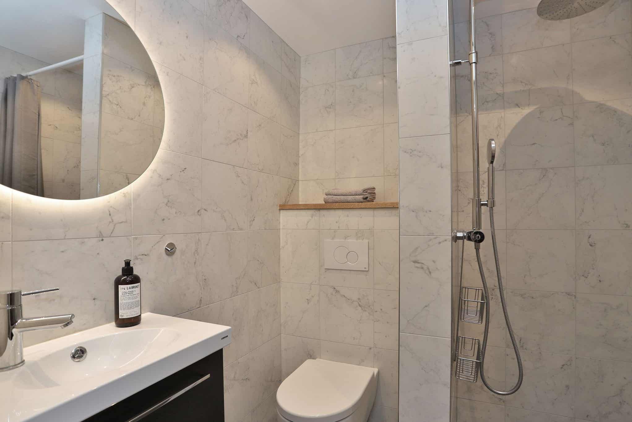 Badkamers:Badkamer 1=douche, wc, sauna.