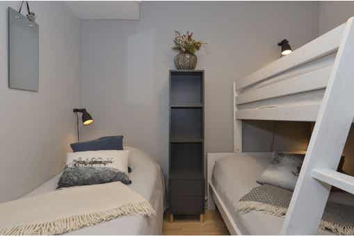 Slaapkamers:Ledikantnis 1 =1 eenpersoonsbed, 1 stapelbed met onderbed 120 cm breed en bovenbed 80 cm breed.
