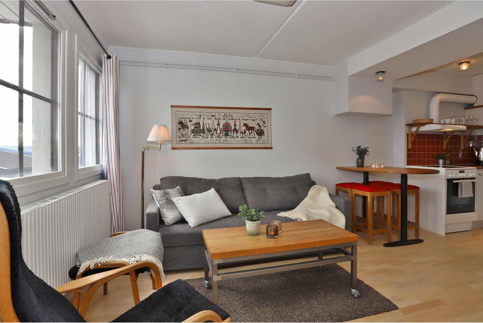 Gezellige en goed uitgeruste appartementen voor zelfcatering direct naast de VM8-stoellift en het World Ski Championship-gebied, en op loopafstand van het dorpsplein. Dicht bij restaurants, bars, nachtclubs, een bakkerij en een skistarshop. De ski -bus is in de buurt en vertrekt regelmatig naar Björnen, Tegefjäll en Duved.