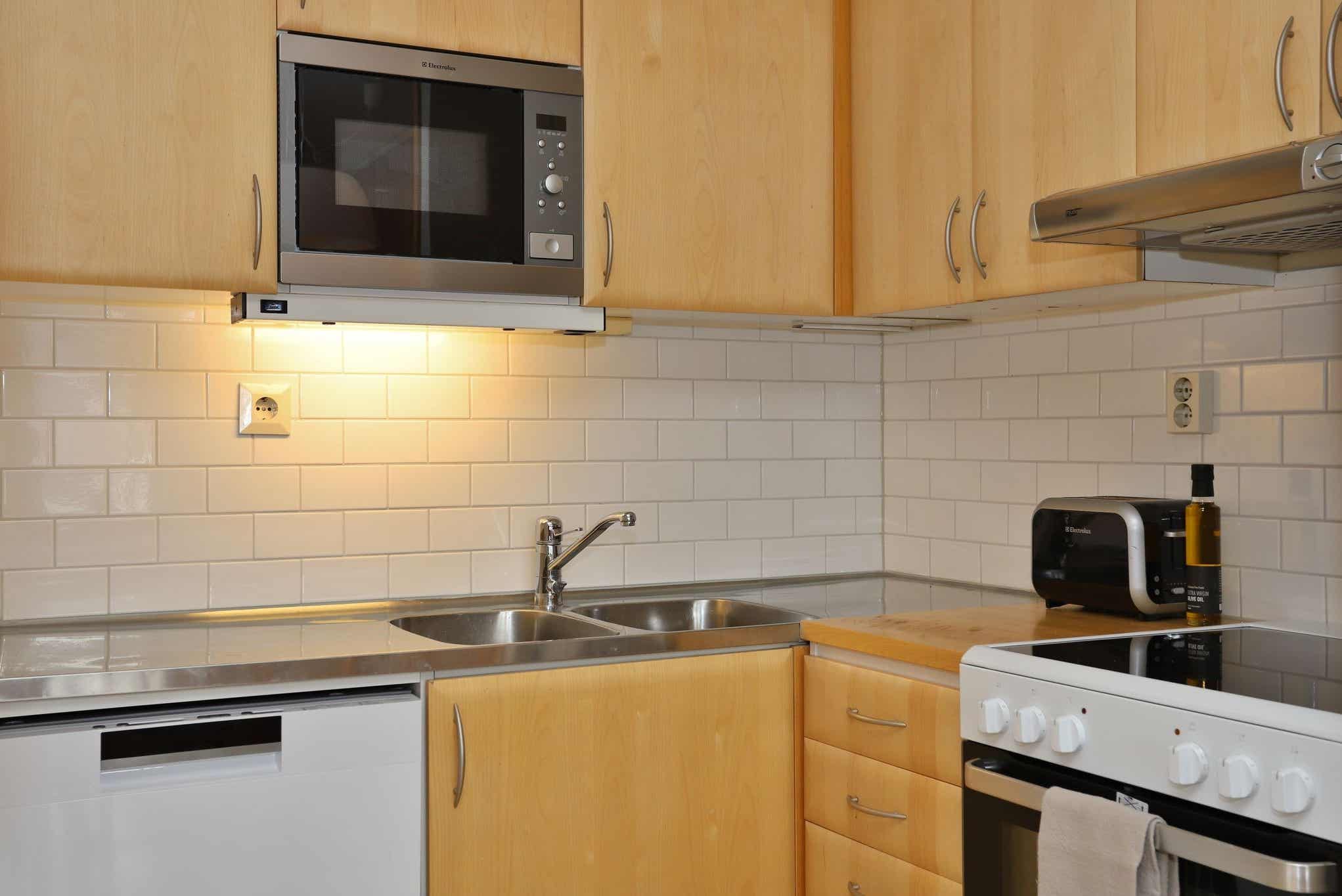 Keuken is voorzien van fornuis met oven, koelkast met vriesvak, vaatwasser, magnetron.