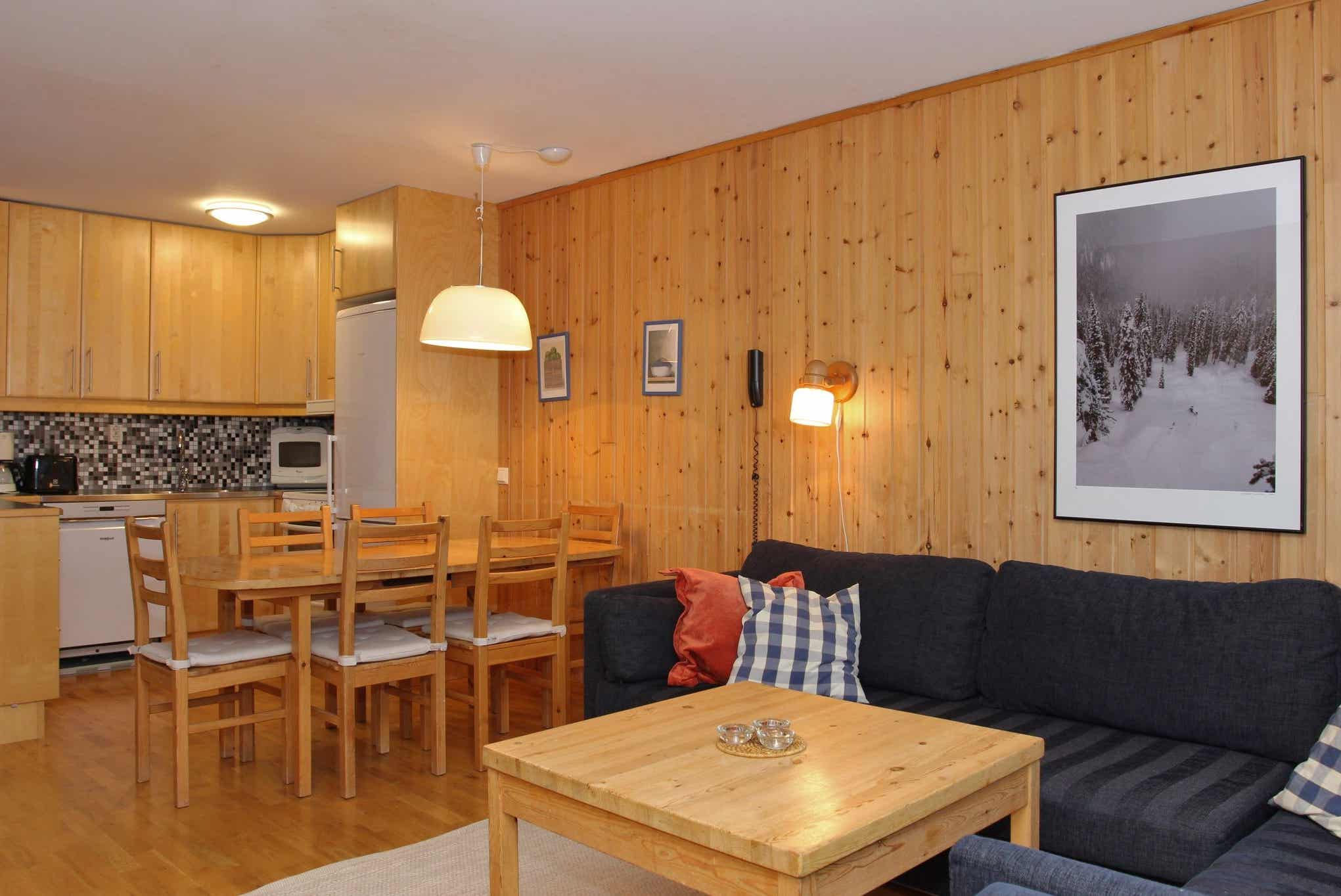 Åregårdarna ligt in Åre By. Appartement op de bovenverdieping, 6 bedden, 60 m², woonkamer met gecombineerde keuken, 2 slaapkamers, 1 douche, 1 toilet.