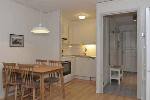 Åregårdarna ligt in Åre By. Appartement op de begane grond, 2+2 bedden, 45 m², woonkamer met gecombineerde keuken, 1 slaapkamer, 1 bedstede, 1 douche, 1 toilet.