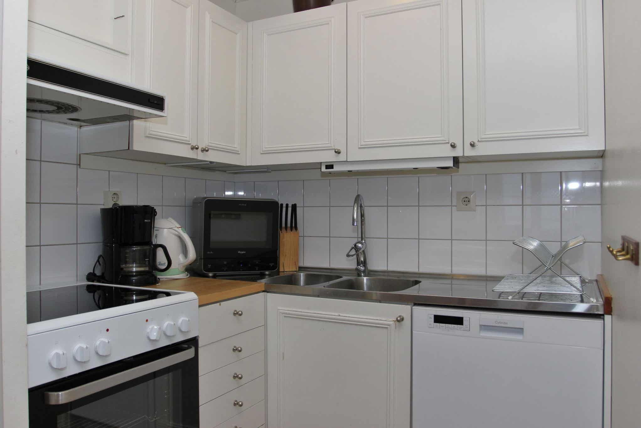 Keuken is voorzien van fornuis met oven, koelkast met vriesvak, vaatwasser, magnetron.