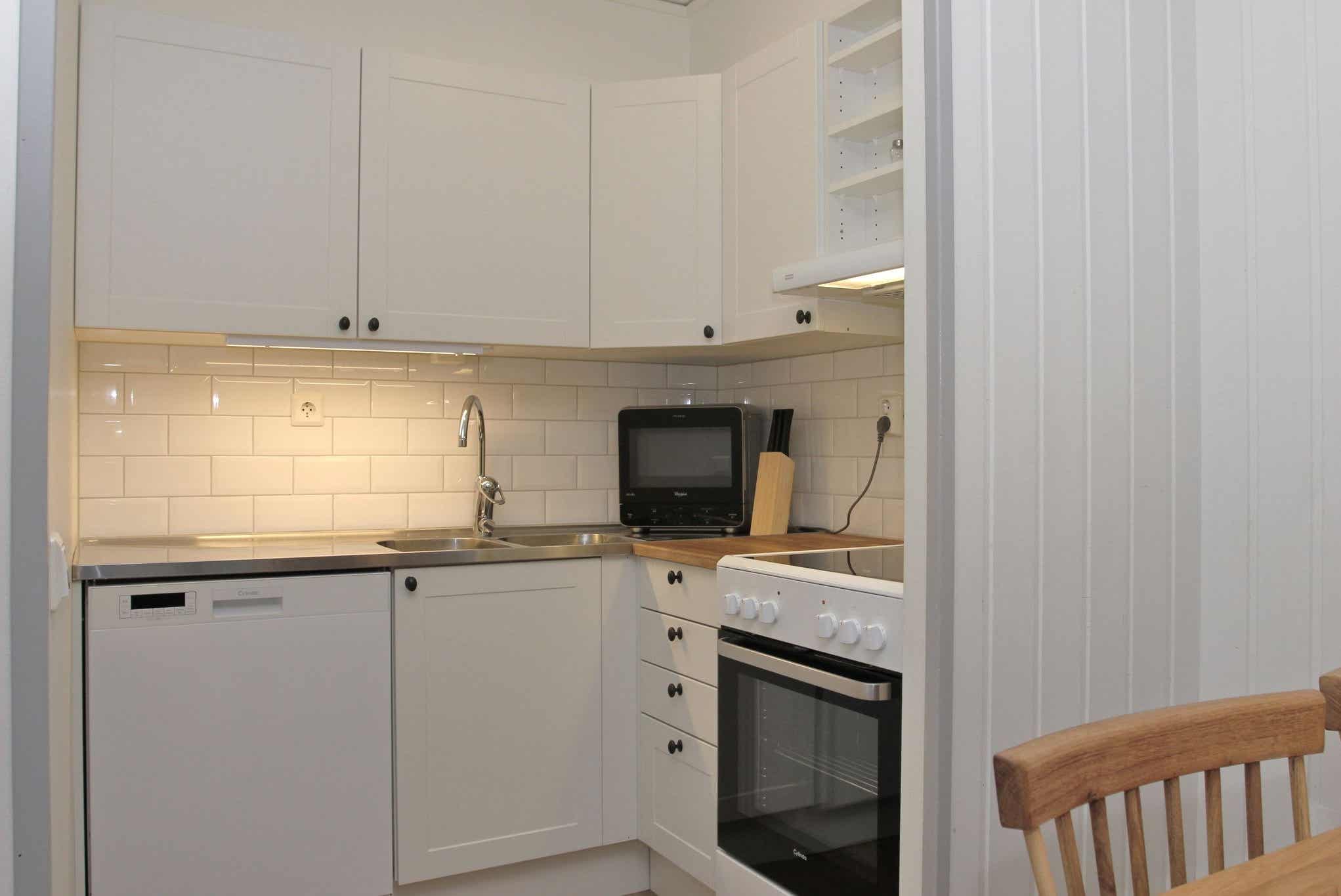 Keuken is voorzien van fornuis met oven, koelkast met vriesvak, vaatwasser, magnetron.