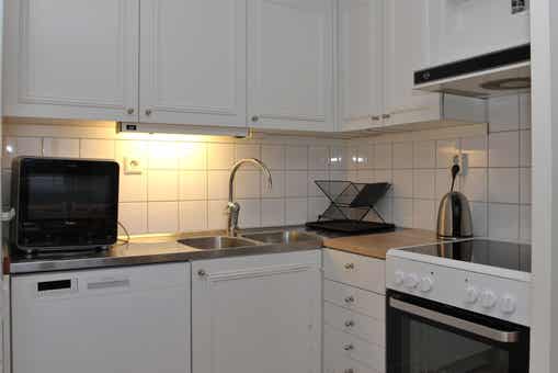 Keuken is voorzien van fornuis met oven, koelkast met vriesvak, vaatwasser, magnetron.