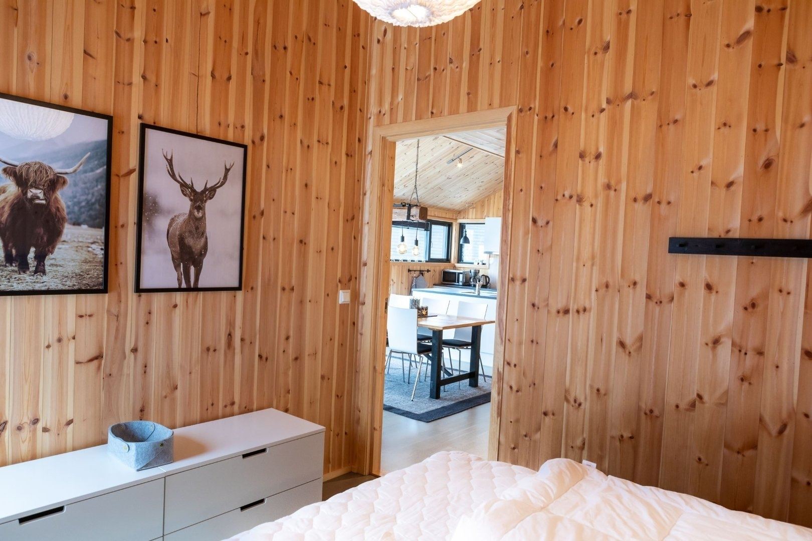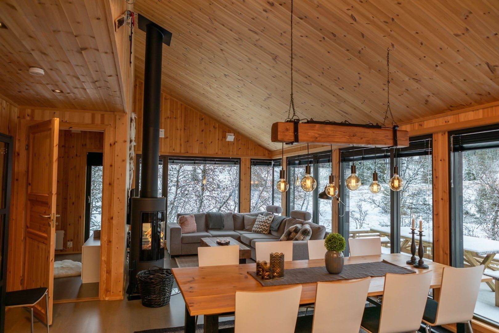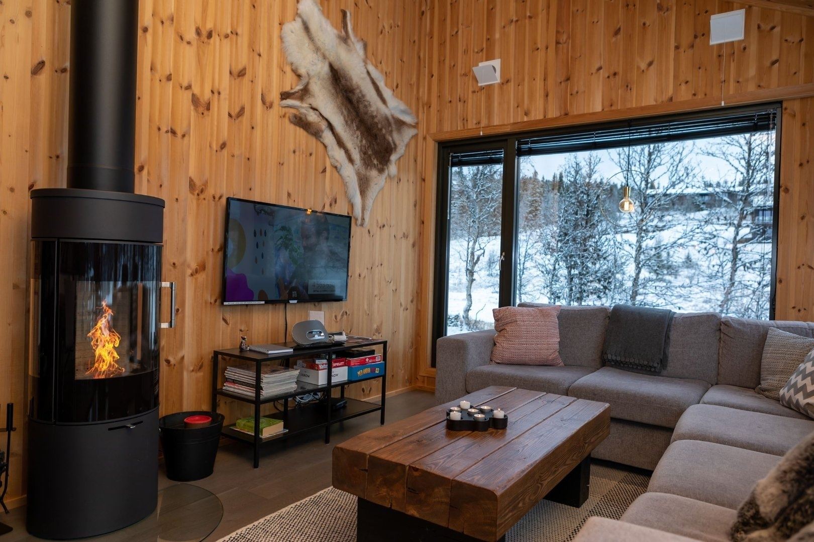 Bjønnlimorka 3 biedt alles wat u nodig heeft voor een ontspannen verblijf. De keuken is voorzien van een kookplaat, koelkast, vriezer, vaatwasser en koffiezetapparaat. De eetkamer biedt plaats aan 8 personen, ideaal om samen van een maaltijd te genieten. Na een dag vol activiteiten kunt u heerlijk ontspannen in de woonkamer, uitgerust met een bank, tv en een warme open haard, ideaal voor gezellige avonden bij het vuur.