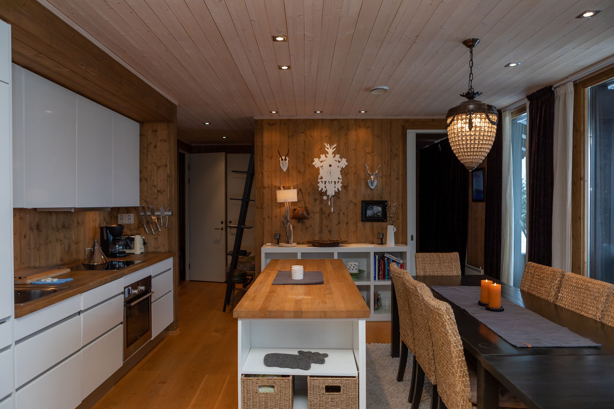 Bjønnliskardet 69 biedt alles wat u nodig heeft voor een ontspannen verblijf. De keuken is uitgerust met een fornuis, koelkast, vriezer, vaatwasser en koffiezetapparaat.