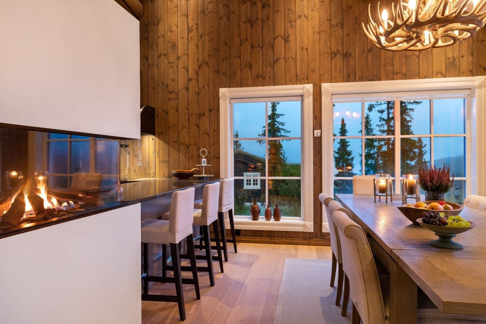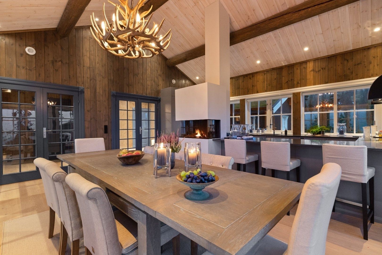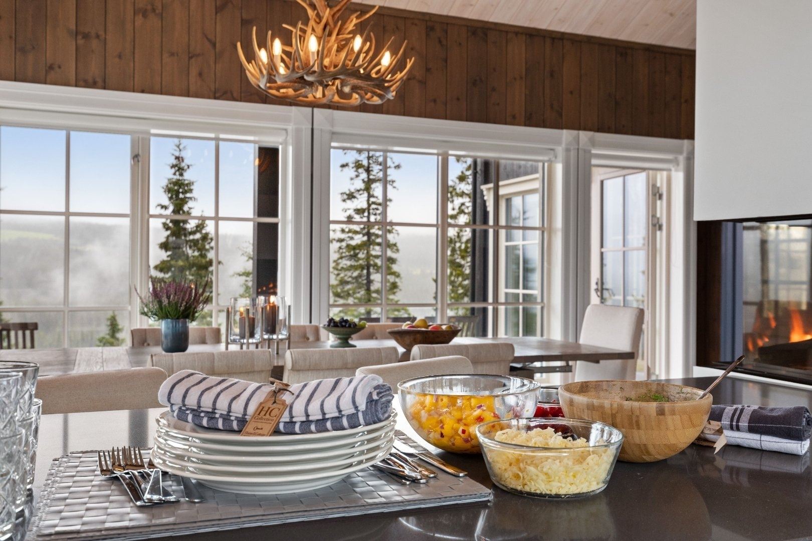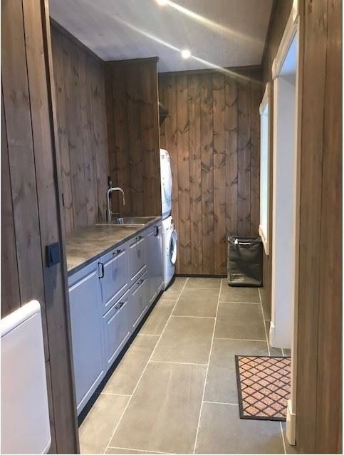 Bjønnlitjønnvegen 17A biedt alles wat u nodig heeft voor een ontspannen verblijf. In de keuken vindt u een koelkast met vriesvak, gasfornuis, magnetron en vaatwasser.