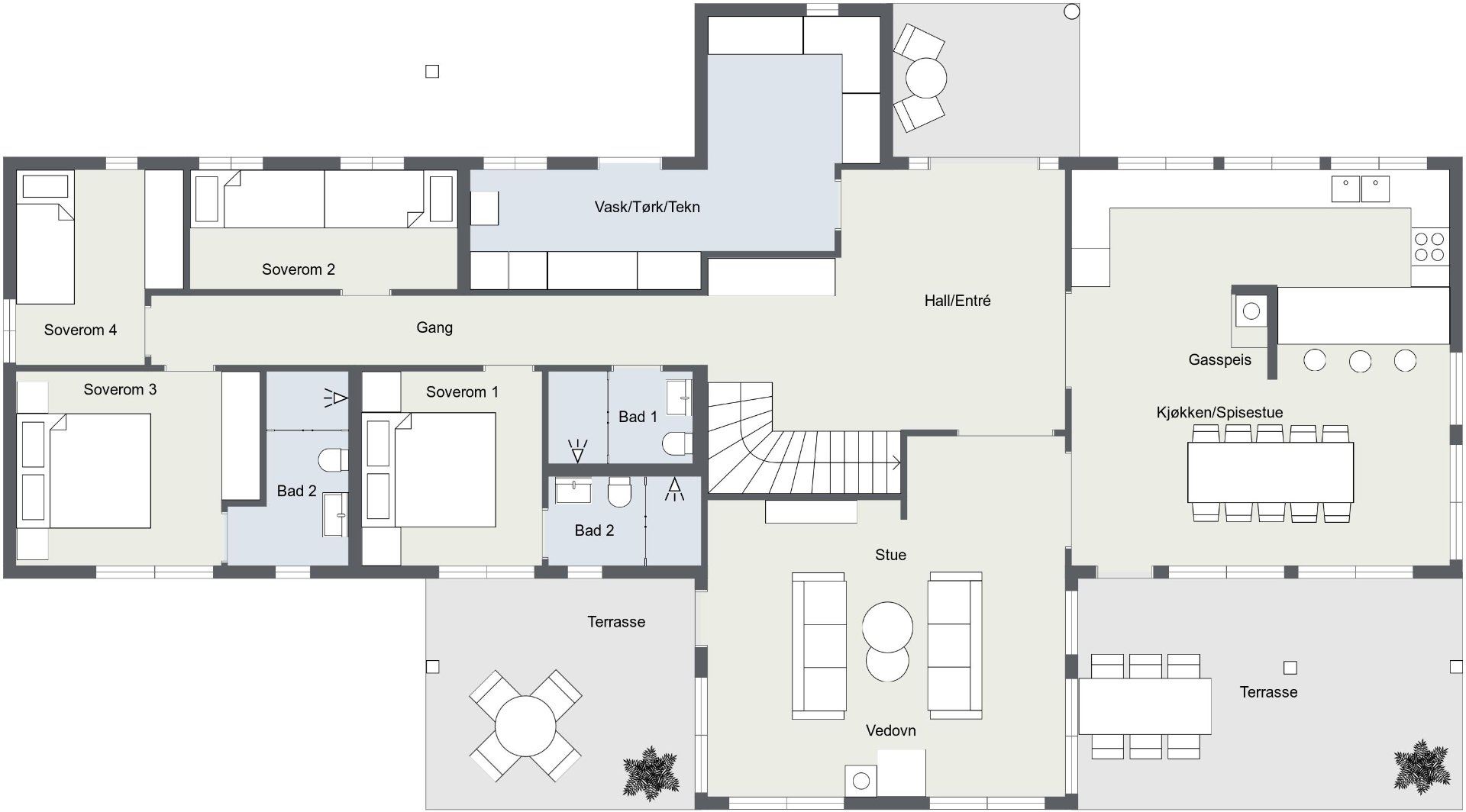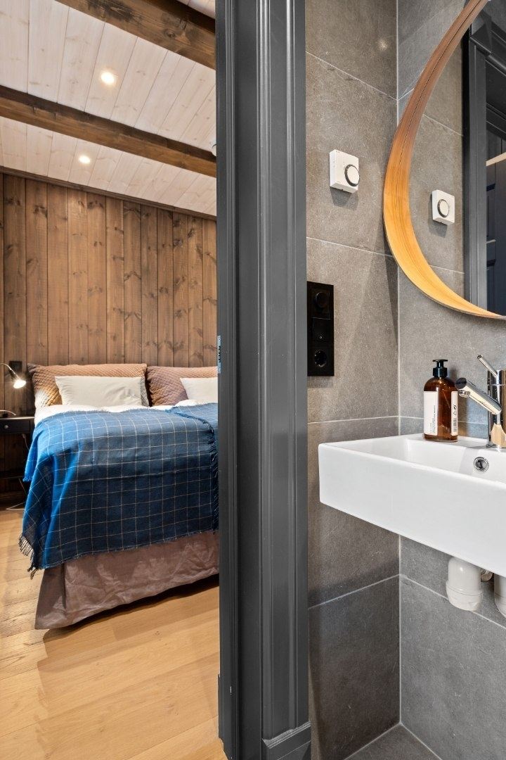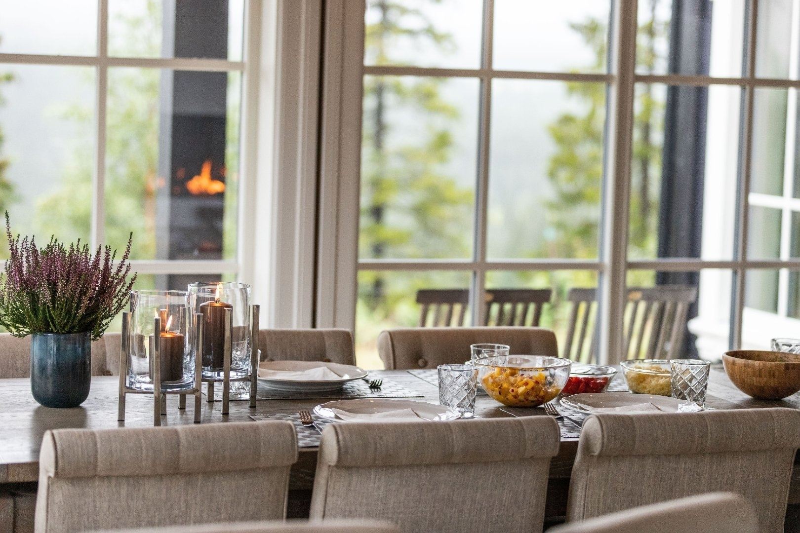 Bjønnlitjønnvegen 17A biedt alles wat u nodig heeft voor een ontspannen verblijf. In de keuken vindt u een koelkast met vriesvak, gasfornuis, magnetron en vaatwasser.
