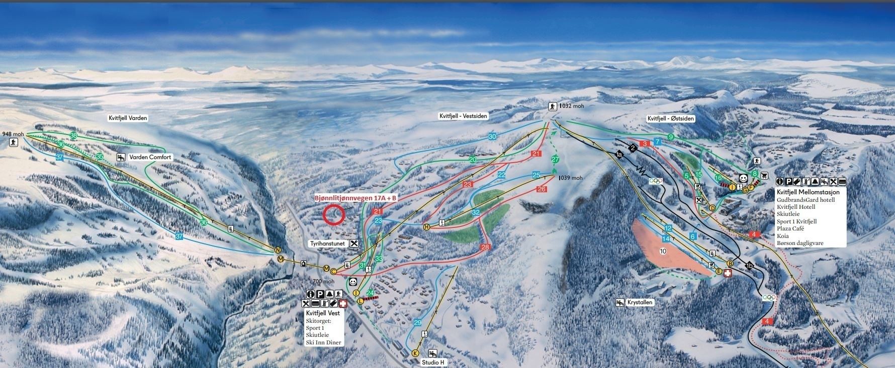 Welkom op Bjønnlitjønnvegen 17A! Aan de westkant is er een korte afstand tot zowel alpineskiën als langlaufen. Bij Skitorget vindt u skiverhuur, een skischool, een sportwinkel, Gondolen Fjellbistro en een supermarkt/deli. Het ligt op korte afstand van diverse restaurants en après-ski.
