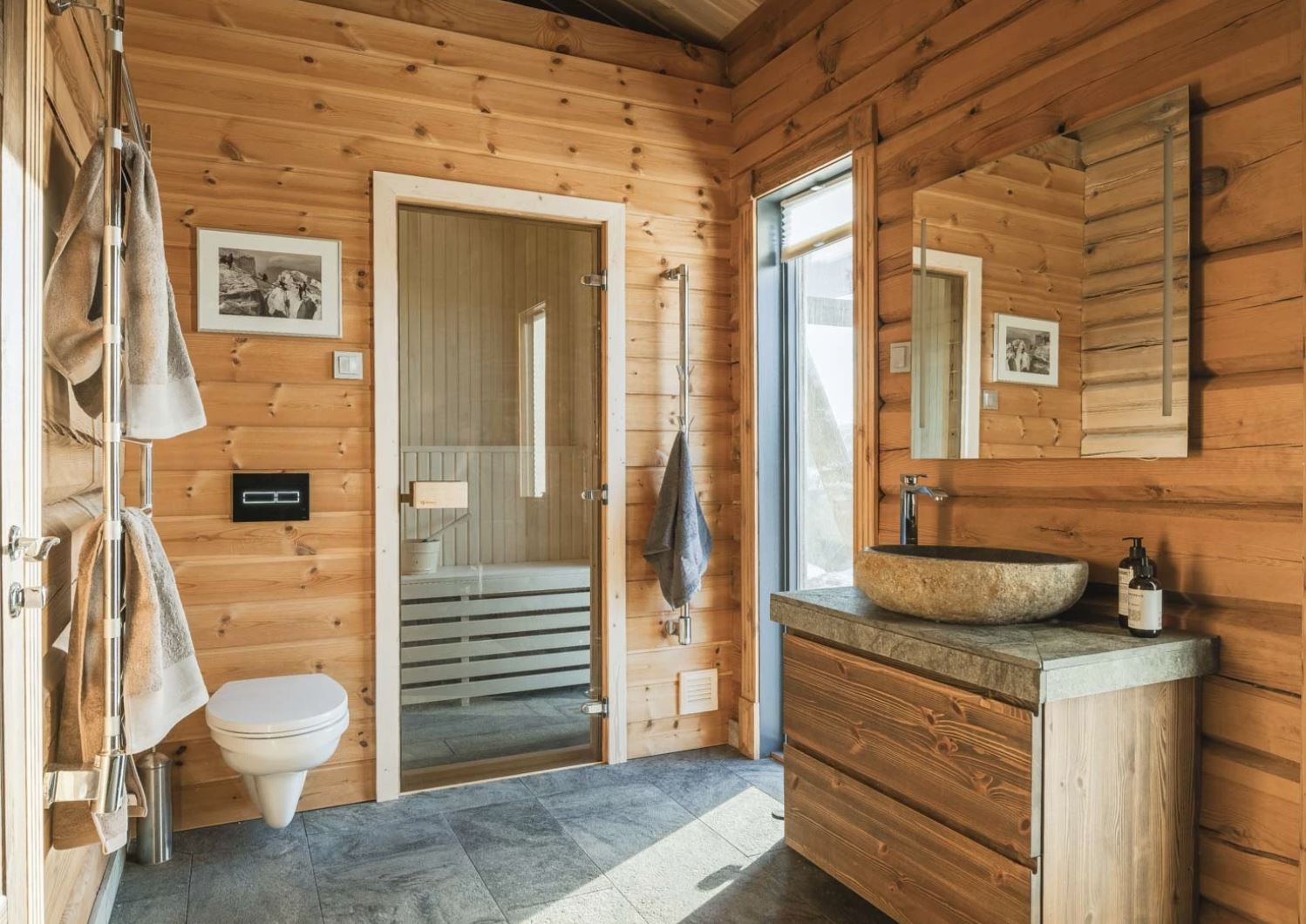Bjønnlitjønnvegen 45 biedt alles wat u nodig heeft voor een ontspannen verblijf: De keuken is uitgerust met een koelkast, vriezer, gasfornuis, magnetron, vaatwasser en koffiezetapparaat.