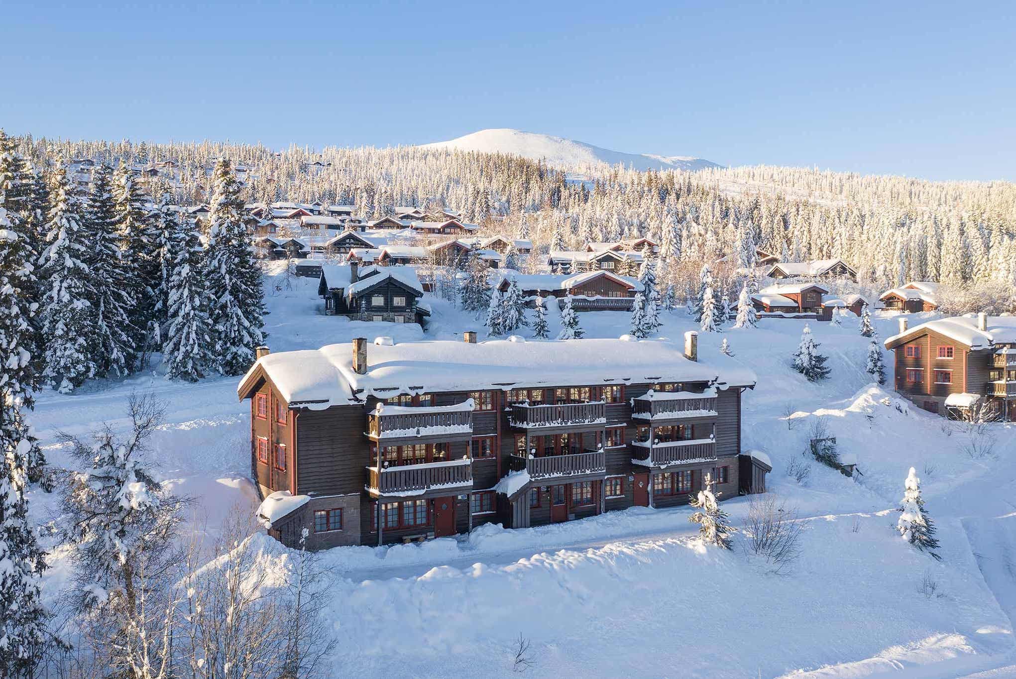 Bjørnebygrenda biedt appartementen voor 4, 8 of 14 personen. Goede standaardappartementen uitgerust met sauna. De 8-bed en de appartementen met 14 bedden hebben ook een open haard. De grotere appartementen hebben jacuzzi’s of badkuip. 170 meter van het openbaar vervoer en 800 meter om op te tillen (LizESpress). Mooie locatie aan de zuidkant van de berg.