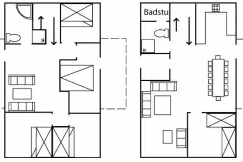 Badkamers:Badkamer 1: met douche, toilet en sauna. Badkamer 2: met douche, toilet en bubbelbad.