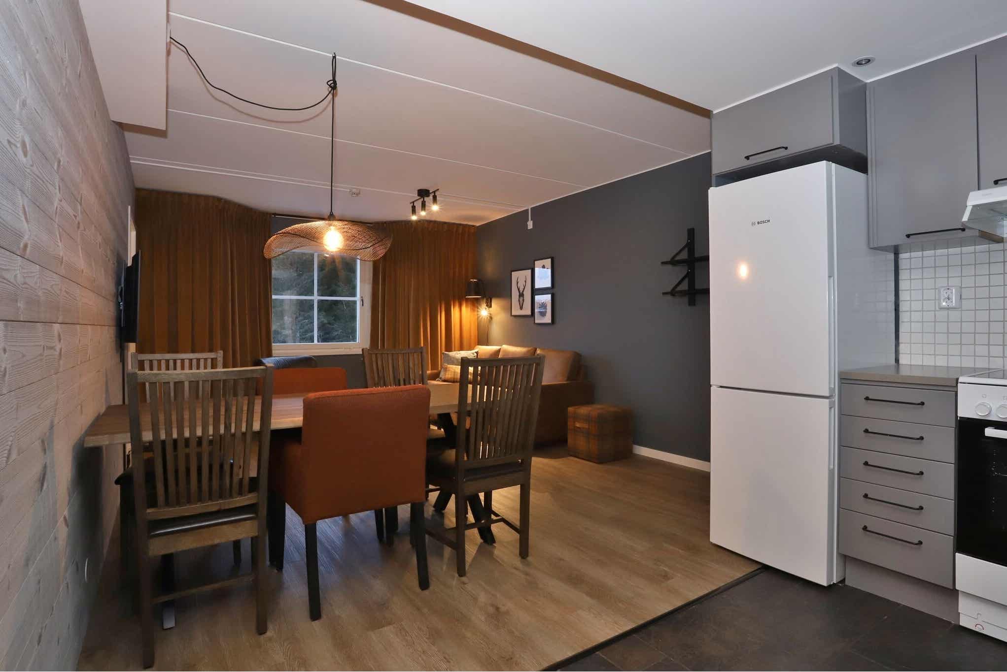 Gezinsvriendelijke appartementen in het hart van Björnen dicht bij de pistes, kinderliften en activiteiten en cross-country tracks. Een supermarkt en skistarshop met skiverhuur zijn gunstig gelegen in het gebouw naast de deur. De keukens zijn uitgerust voor zelfcatering en sommige eenheden hebben ook een droogkast en vaatwasser.