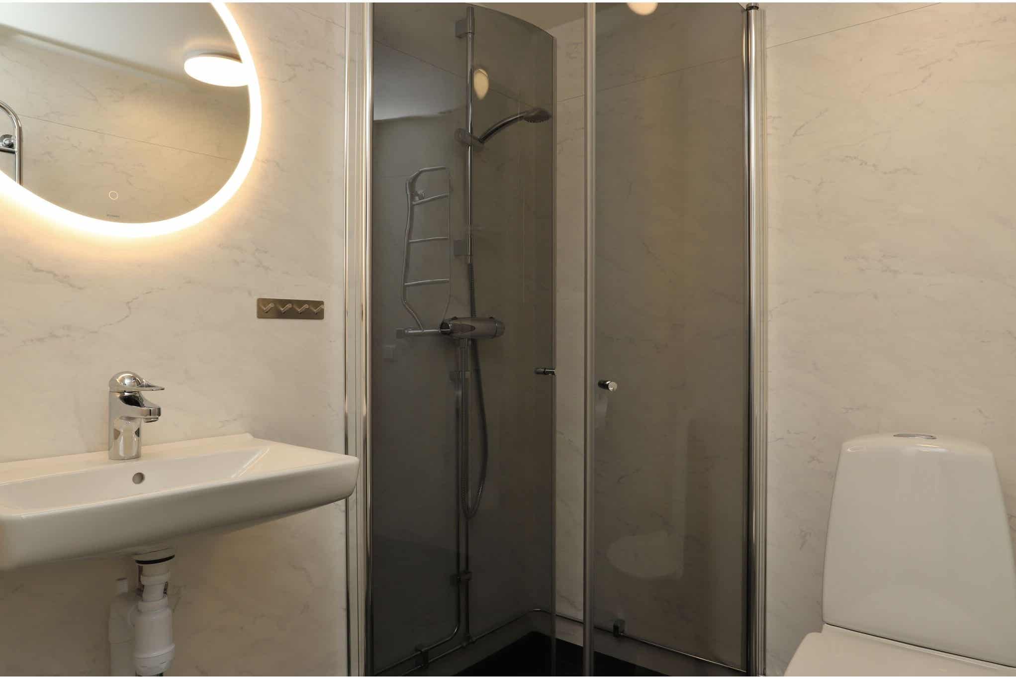 Badkamers:Badkamer 1=1 douche/wc.