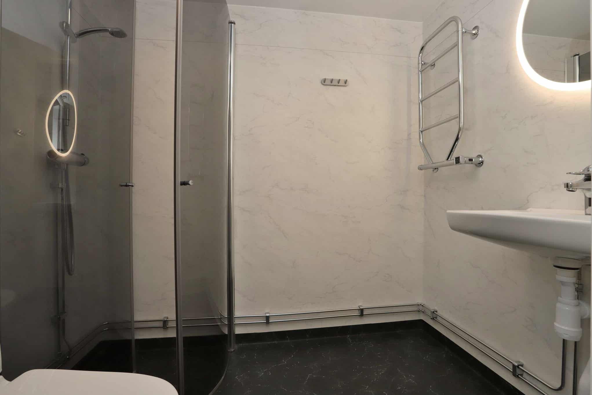 Badkamers:Badkamer 1=1 douche/wc. Badkamer 2=1 douche/wc.