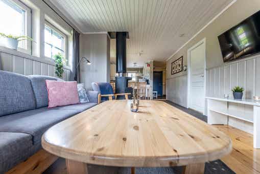 Woonkamer met gecombineerde keuken.