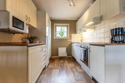 De keuken is voorzien van fornuis met oven, magnetron, vaatwasser, koelkast, vriezer.