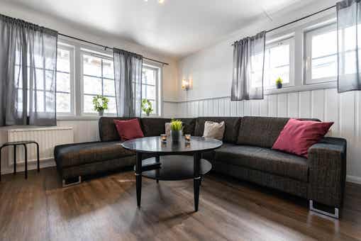 Appartement op de begane grond, 8 bedden, 56 m², woonkamer met gecombineerde keuken, 2 slaapkamers, 1 douche, 1 toilet, sauna.
