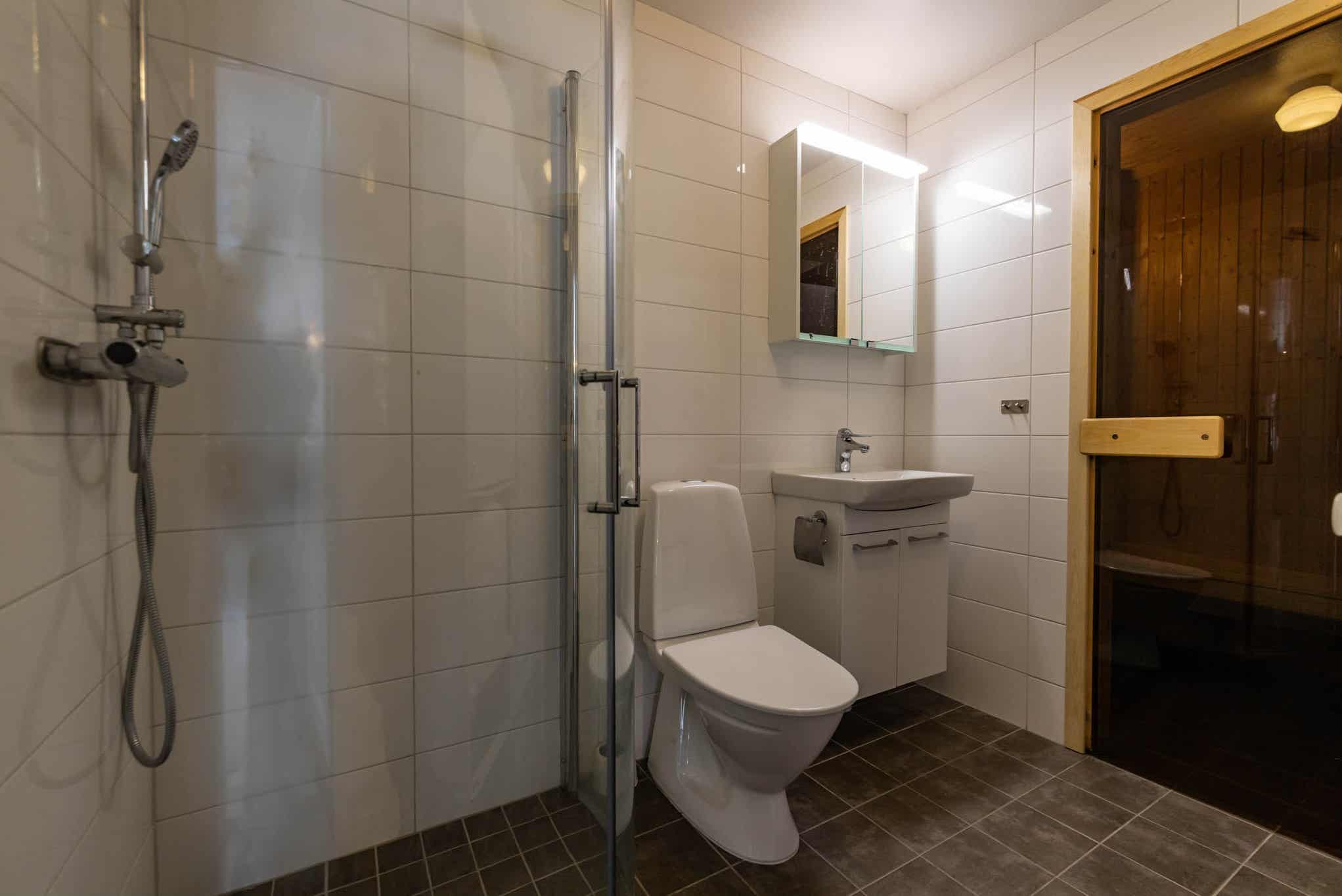 Badkamers:Badkamer 1: met douche/WC/sauna.