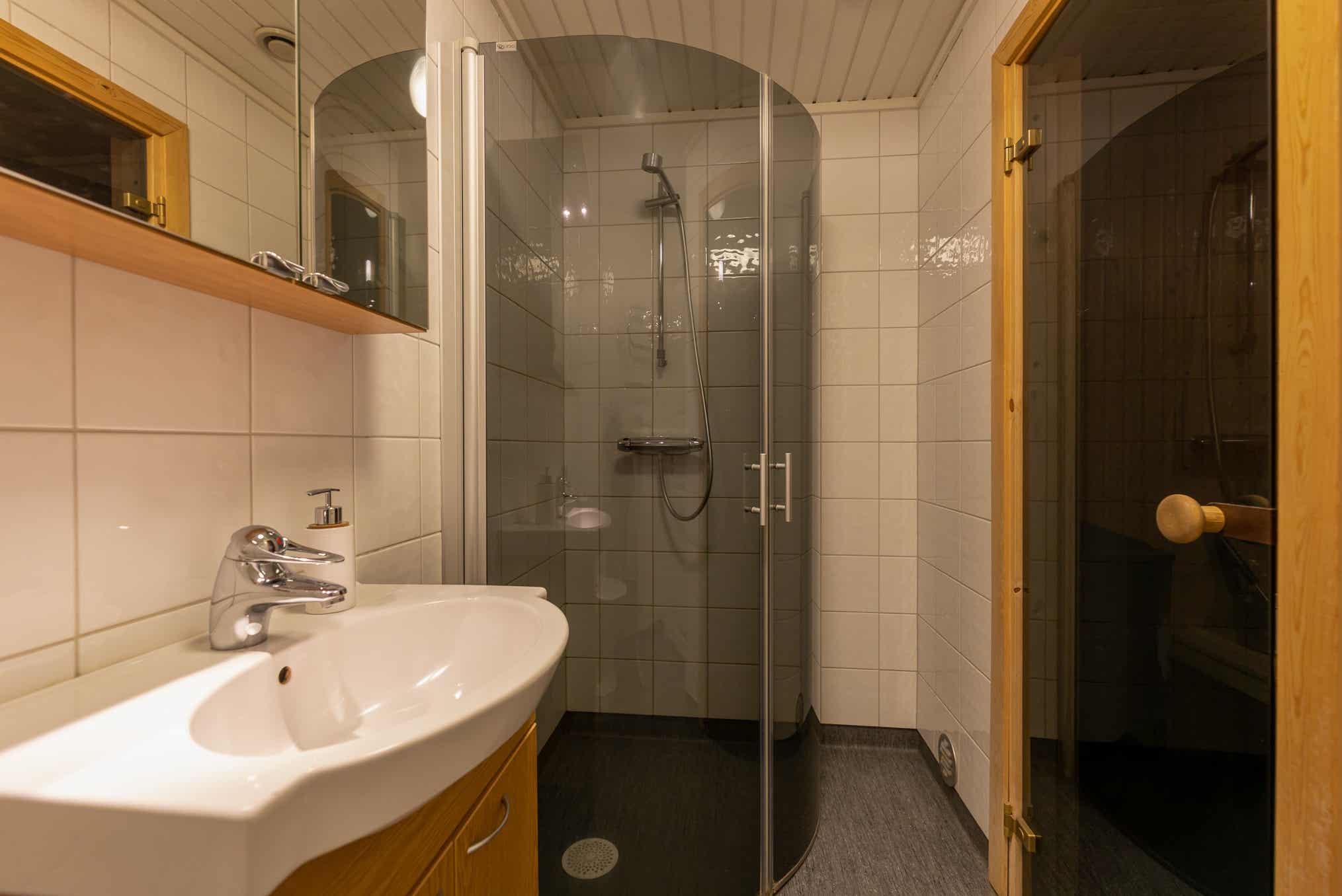 Badkamers:Badkamer 1: met douche/WC/sauna.