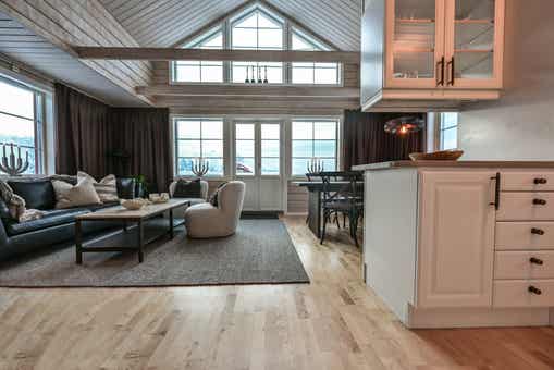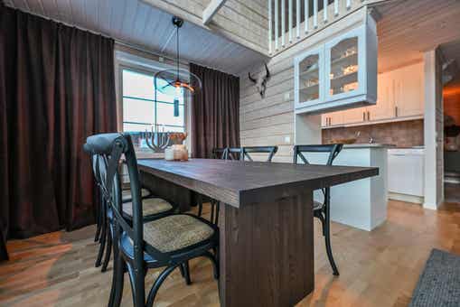 Horizon Lodge ligt in Hundfjället. Vrijstaand huisje, 6+2 bedden, 100 m², woonkamer met gecombineerde keuken, 2 slaapkamers, 1 bedzolder, 2 douches, 2 WC, sauna.