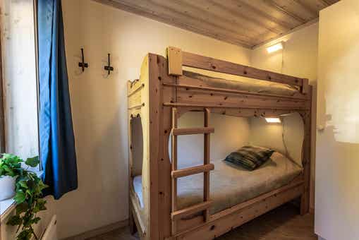 Slaapkamers:Slaapkamer-1 = 1 tweepersoonsbed. Slaapkamer-2 = 1 tweepersoonsbed. Slaapkamer-3 = 1 stapelbed met een onderbed van 160 cm breed. Slaapkamer-4 = 1 stapelbed. Slaapkamer-5 = 1 stapelbed, 2 eenpersoonsbedden.