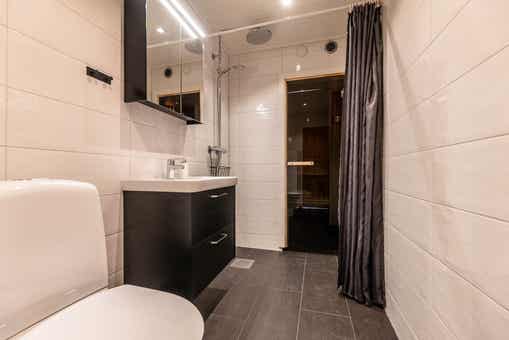 Badkamers:Badkamer 1: met douche/sauna. Badkamer 2: met douche/WC. Badkamer 3: met toilet.