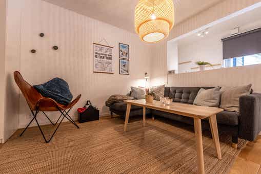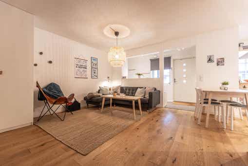Woonkamer met gecombineerde keuken.