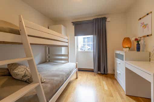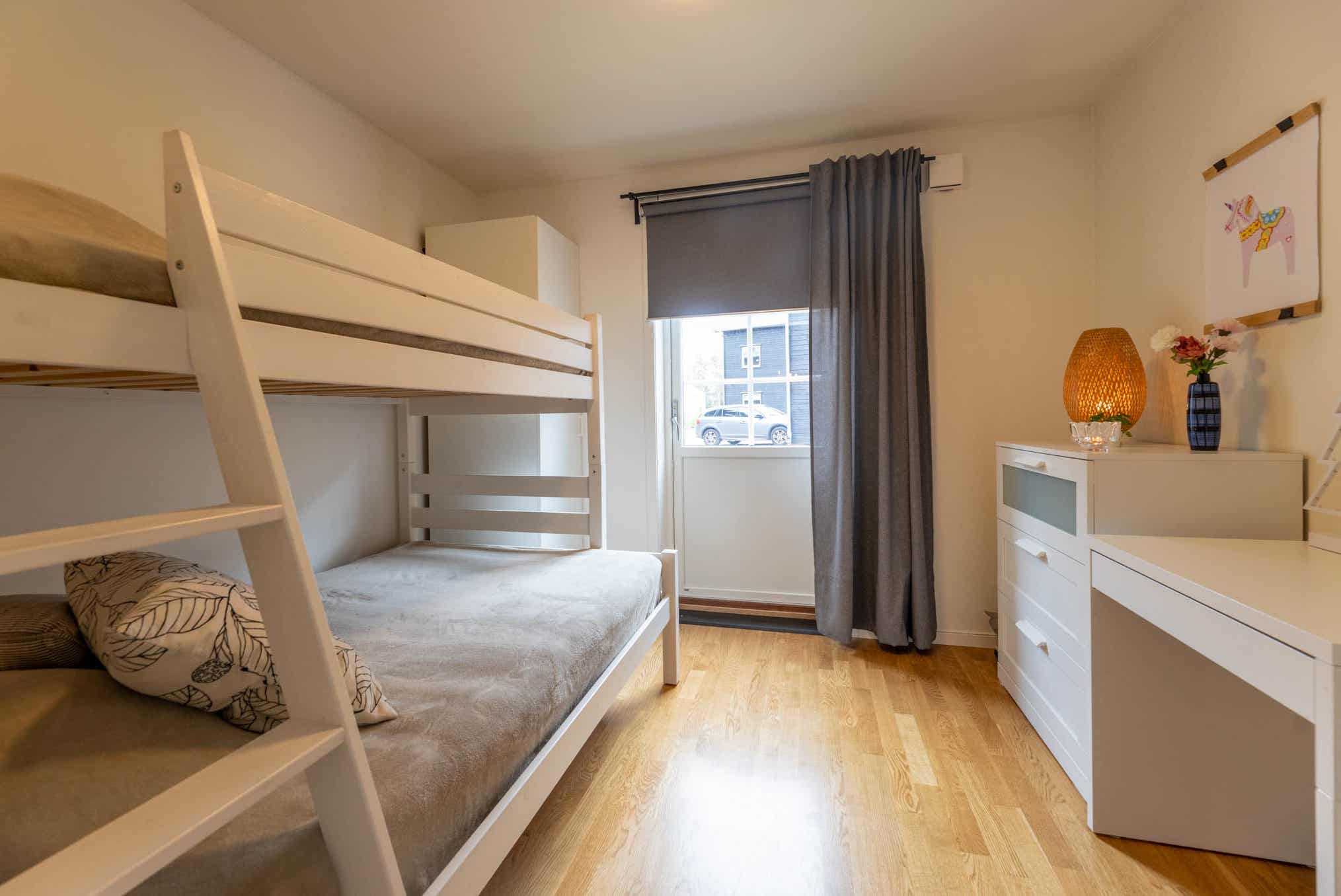 Slaapkamers:Slaapkamer-1 = 1 tweepersoonsbed 180 cm breed. Slaapkamer-2 = 1 stapelbed met 120 cm breed onderbed en 90 cm breed bovenbed.