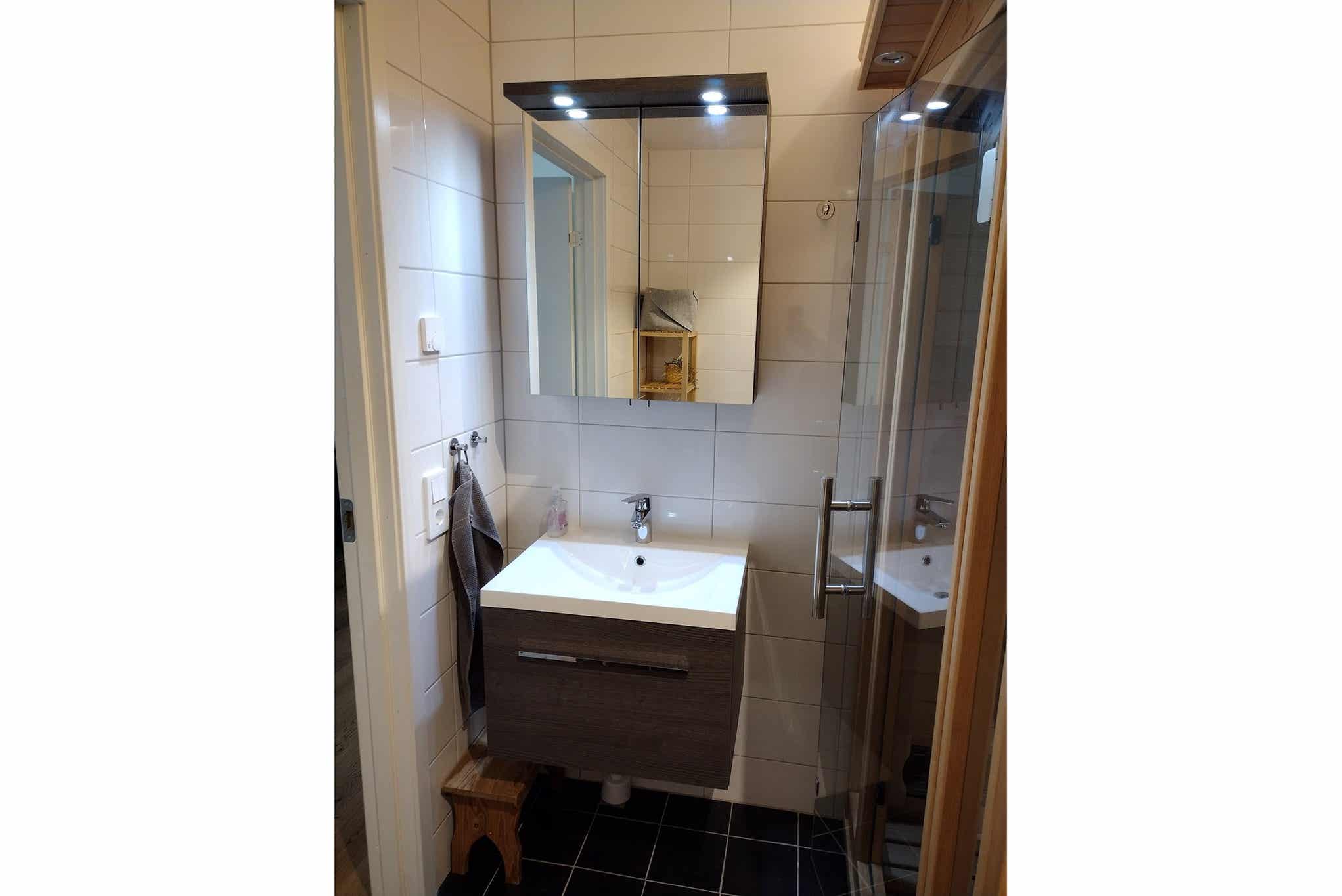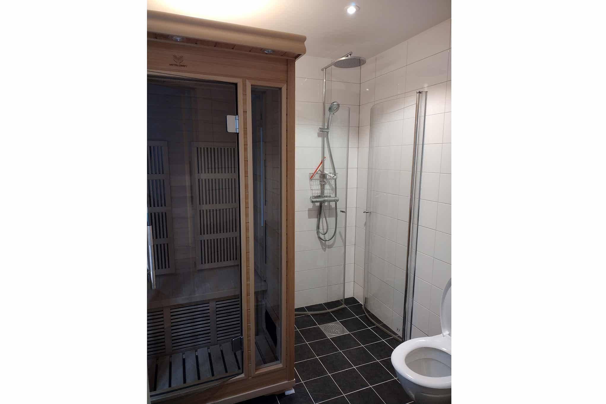 Badkamers:Badkamer 1: met douche/WC/sauna.
