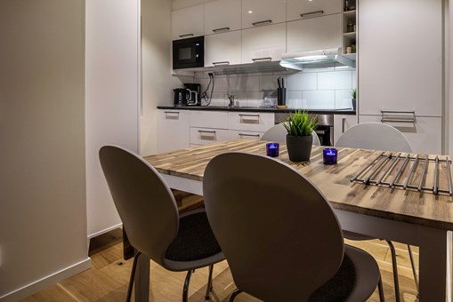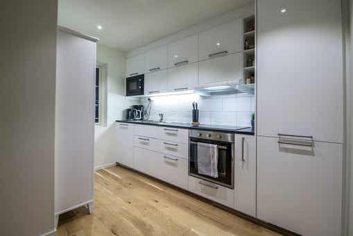 De keuken is voorzien van elektrische kookplaat, inbouwoven, koelkast, vriezer, vaatwasser, magnetron.