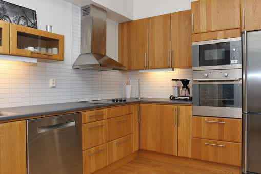 Keuken is voorzien van fornuis met oven, koelkast met vriesvak, vaatwasser, magnetron.