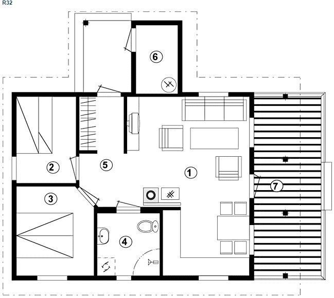 Mooie hut met twee slaapkamers, een badkamer, woonkamer en keuken. Waterbroek onder de vloerverwarming in alle kamers.
