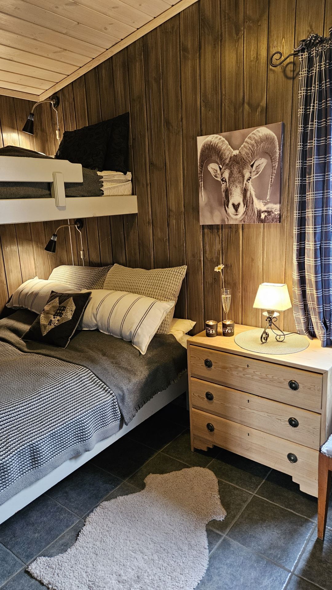 Mooie hut met twee slaapkamers, een badkamer, woonkamer en keuken. Waterbroek onder de vloerverwarming in alle kamers. De cabine bevindt zich vlak bij de Alpinbakken Sjusjøen Ski Center Natrudstilen, en je zult ook ski -runs vinden in de directe omgeving. Ski in/skiën voor beide.