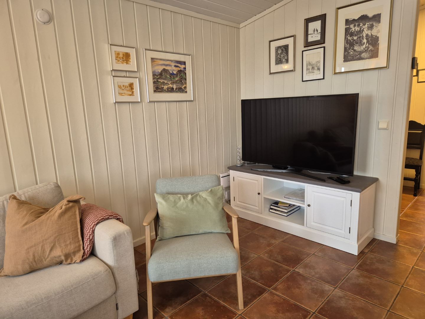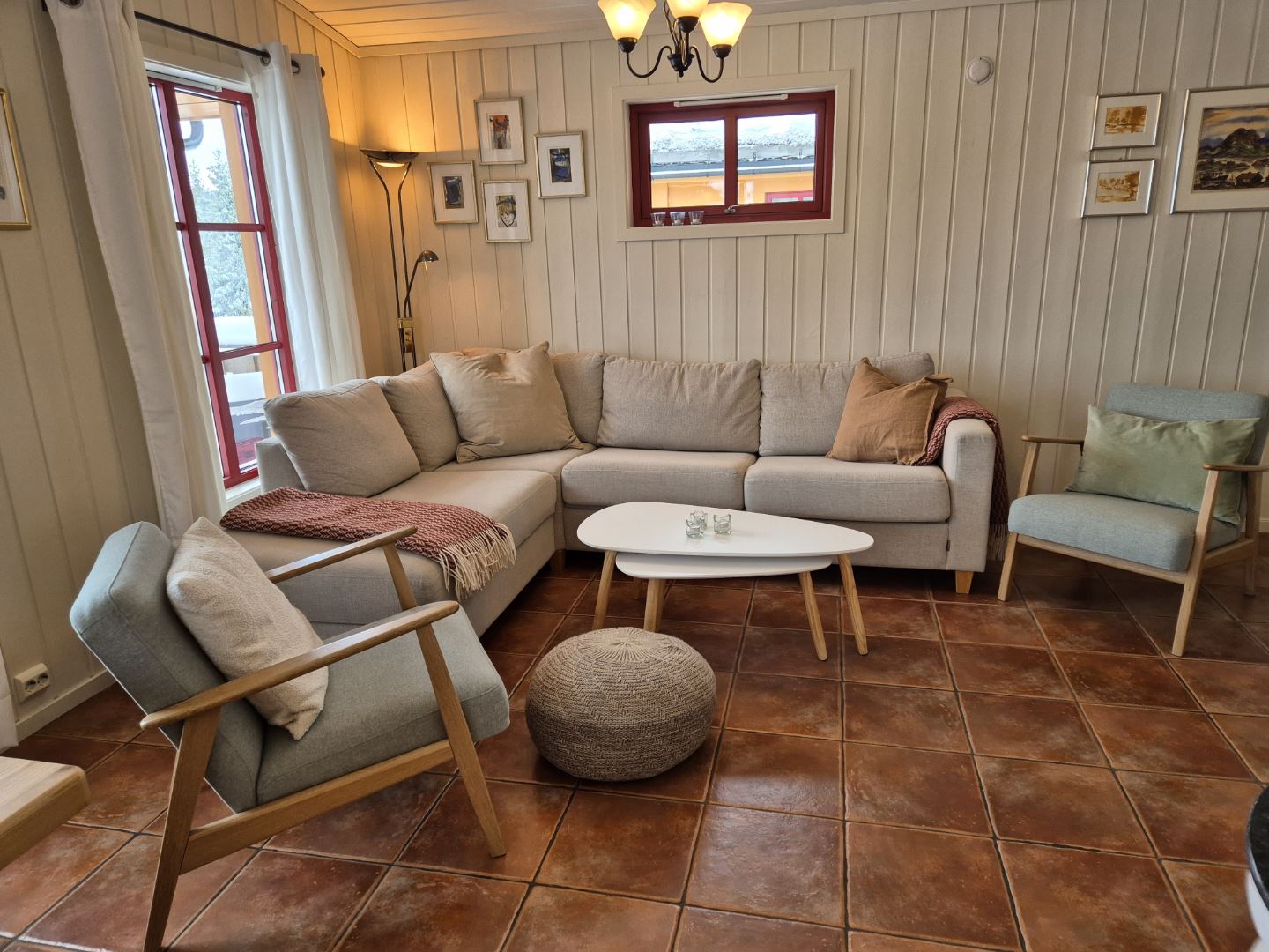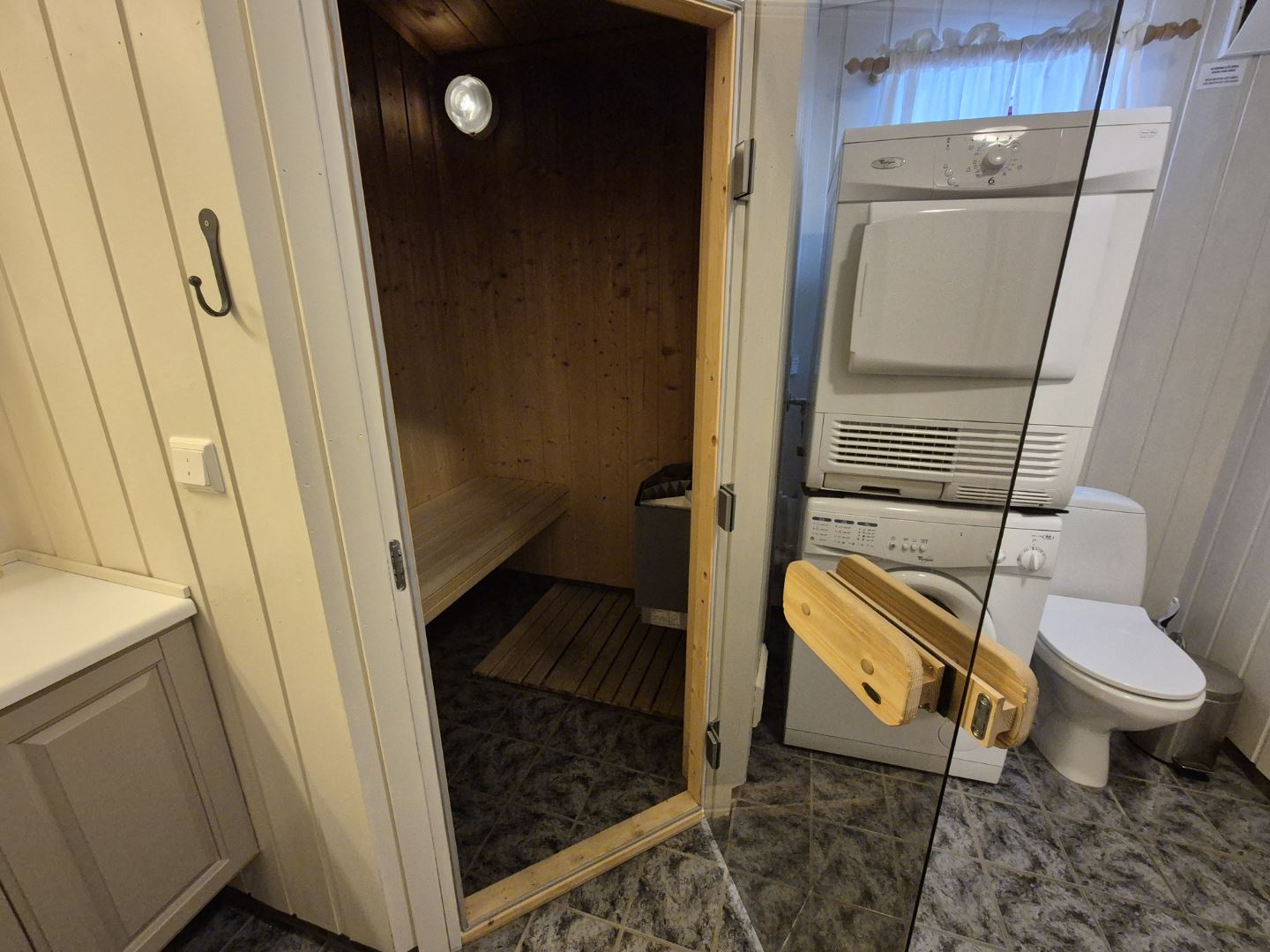 Nieuw gerenoveerde hut met moderne meubels in lichte woonkamer. Comfortabel voor ontspanning tussen lichaamsbeweging en buitenactiviteiten. Veranda met buitenmeubels en opbergruimte met ruimte voor ski’s. Badkamer met sauna, douche, toilet, wasmachine en droger.